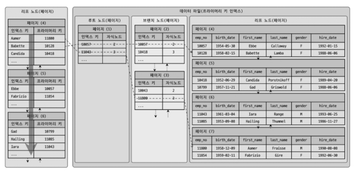 - 위 그림의 경우, 하나의 인덱스 페이지(16KB)에