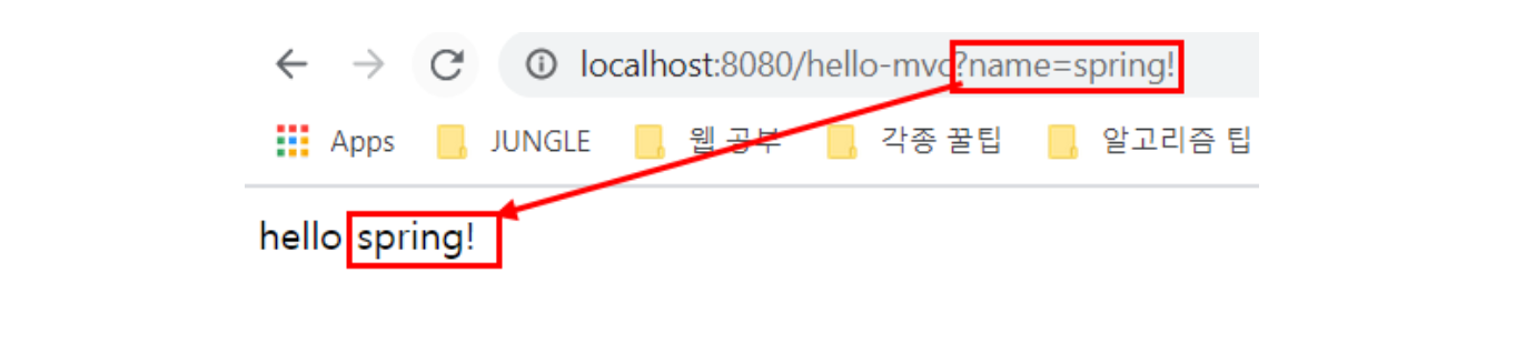 여기서 name이 spring!으로 바뀌게 된다. 여기서 &{} 이건 model에서 값을 꺼내는 거다. 모델의 key 값이 name인 곳에서 빼내서 치환해 준다.