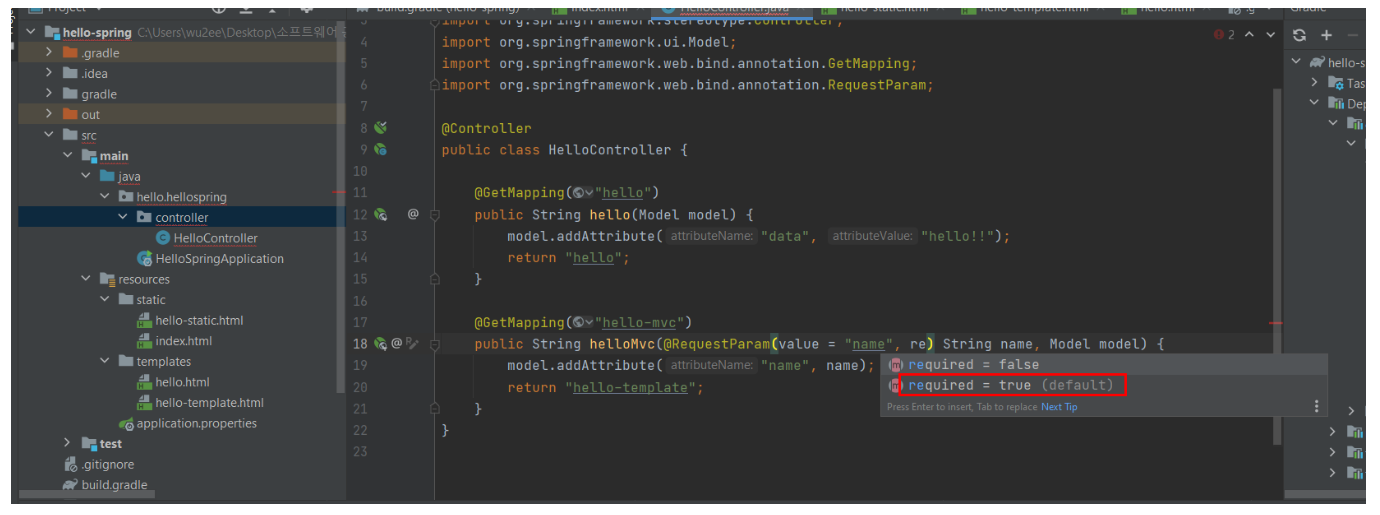 기본적으로 required는 디폴트로 true기 때문에 반드시 주소창에서 값을 넣어줘야 한다.