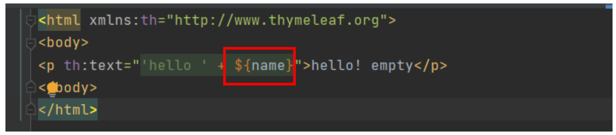 <p th:text="'hello ' + ${name}">hello! empty</p>