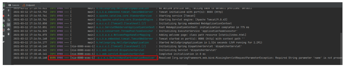 참고로 정적일때는 마지막에 뷰리졸버가 HTML을 변환해주지 않고 그대로 반환해줬고, 지금과 같은 템플릿 엔진에서는 변환을 해서 웹브라우저에 넘겨준다.