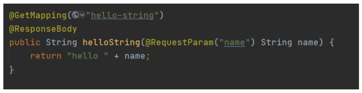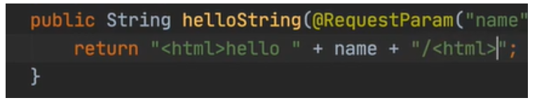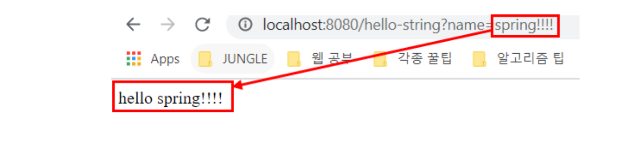 hello spring 이라는 문자로 바뀌고 이 문자가 요청한 클라이언트에게 그대로 내려간다.