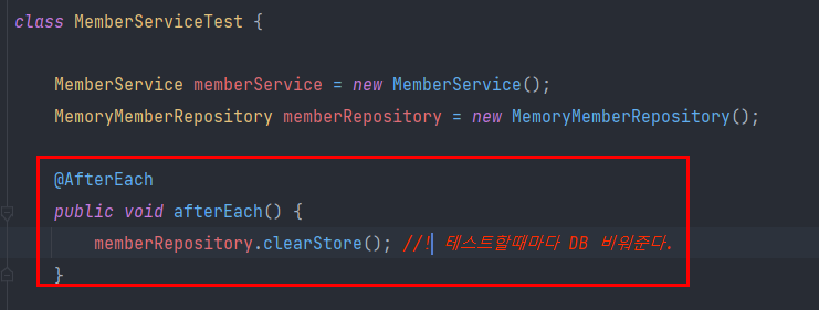 memberRepository.clearStore(); //! 테스트할때마다 DB 비워준다.