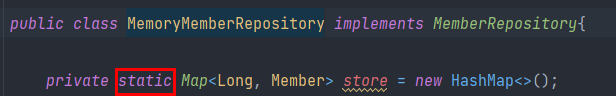 memberRepository = new MemoryMemberRepository(); //! 여기서 리포지토리 인스턴스를 만들고