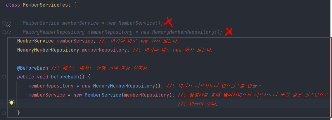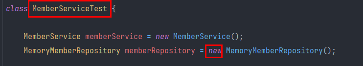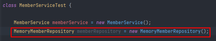 MemoryMemberRepository memberRepository; //! 여기다 바로 new 하지 않는다.