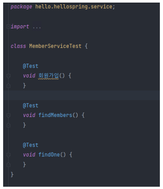 // 이런식으로 테스트 코드가 대부분 맞춰진다.