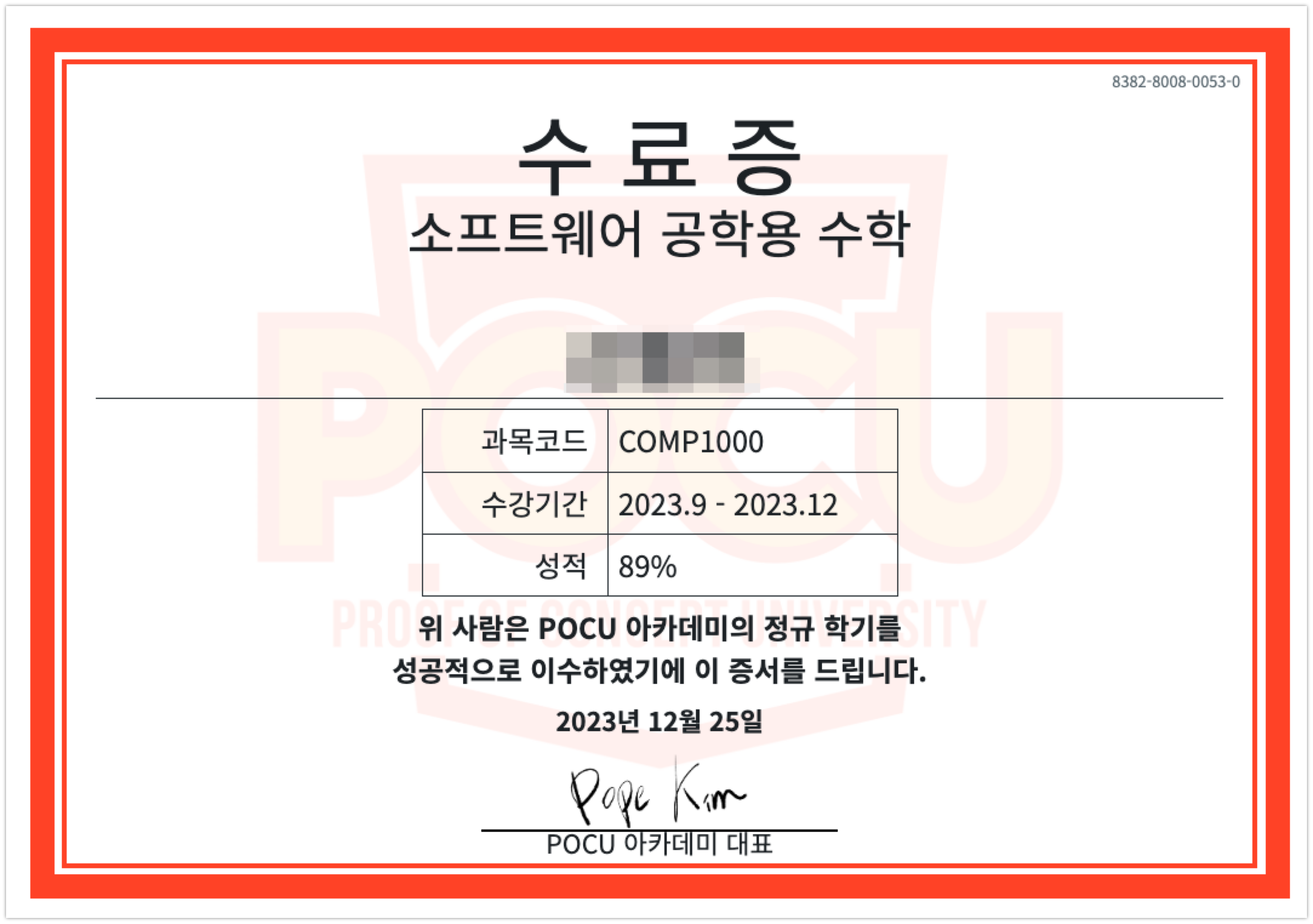 POCU COMP1000 소프트웨어 공학용 수학 후기