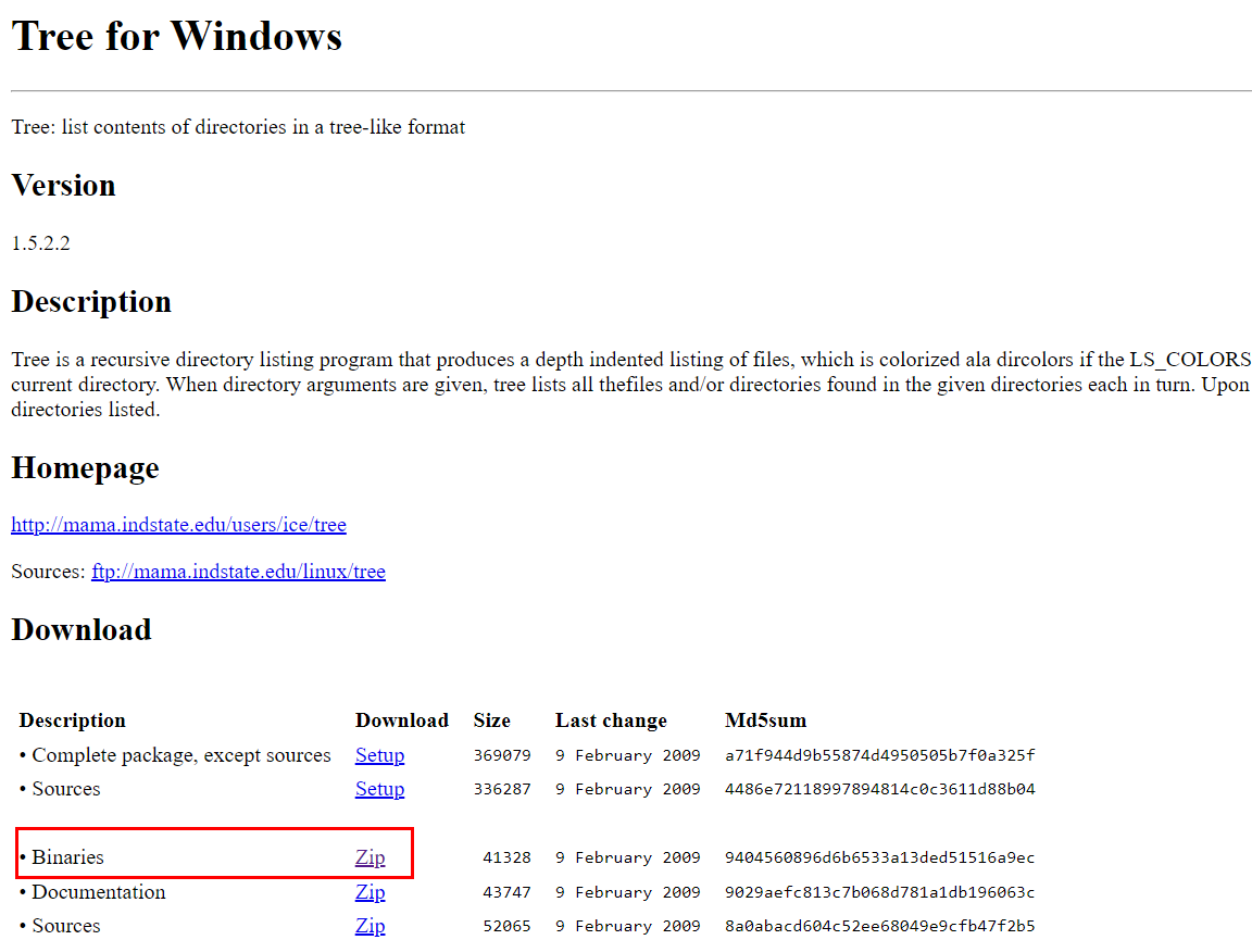 http://gnuwin32.sourceforge.net/packages/tree.htm