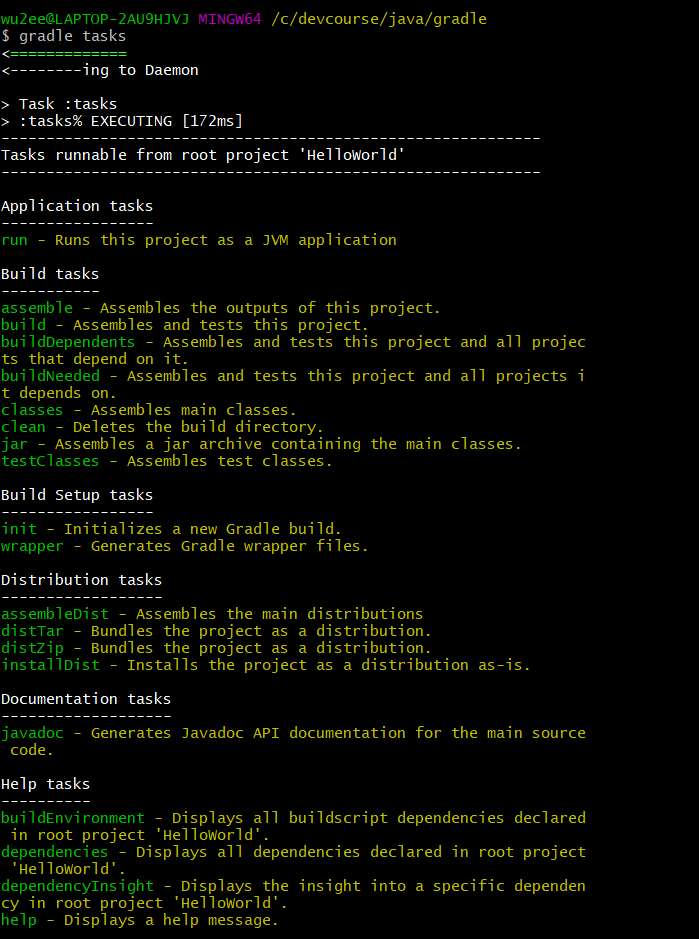 이 명령어를 통해 gradle의 task들을 전부 확인할 수 있다.