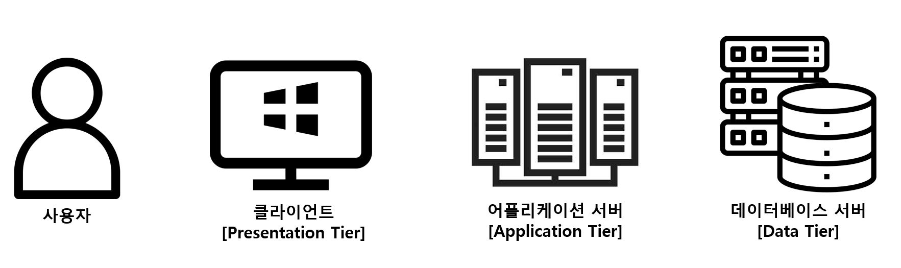클라이언트와 서버 두 개의 티어로 구성되며 이는 보통 데스크탑 응용프로그램에서 사용되는 아키텍쳐이다.