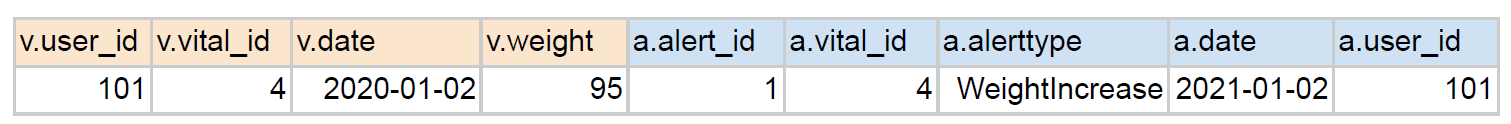 JOIN prod.alert a ON v.vital_id = a.vital_id;