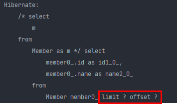 즉 위 코드의 createQuery 안의 쿼리에서 Member는 멤버객체 를 의미한다. (테이블이 아니라는 것이 포인트다.)