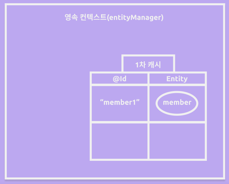 위 코드처럼 멤버 객체를 persist 하면 영속상태가 되고, 1차 캐시에 그 값이
