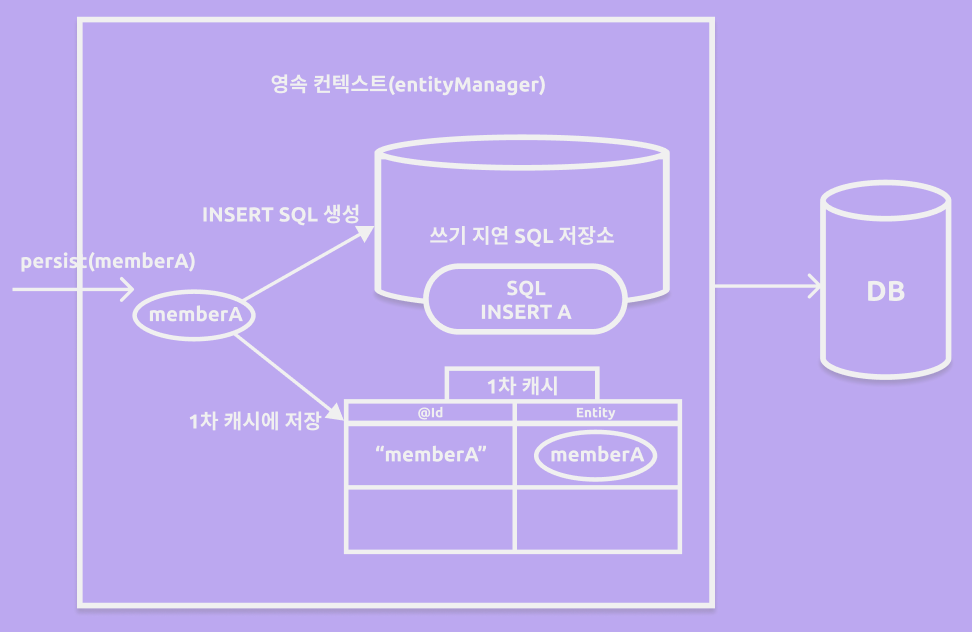 여기서 persist는 DB에 저장한다는게 아니라 영속성 컨텍스트를 통해서 엔티티를 영속화한다는 뜻이다.